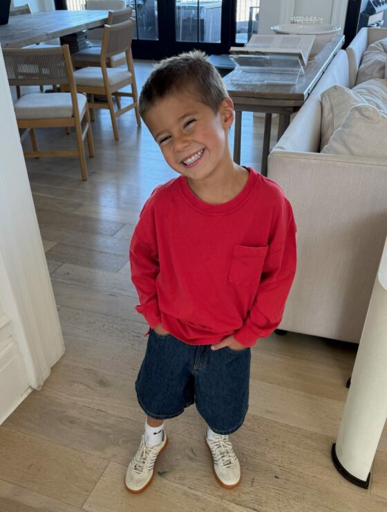 Another back to school outfit for Ollie!  I love the bright red!  His darker jean shorts are sold out, but I got him the lighter version too. His full outfit linked here.